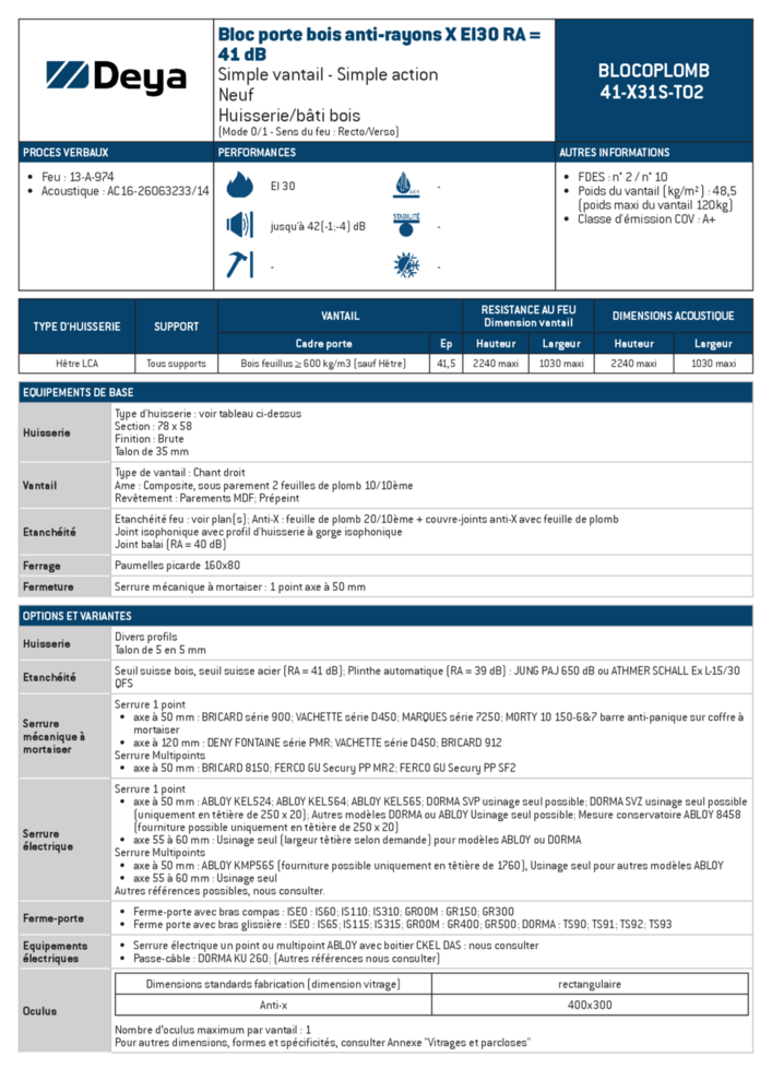 Bloc porte bois anti-rayons X EI30 RA = 41 dB
