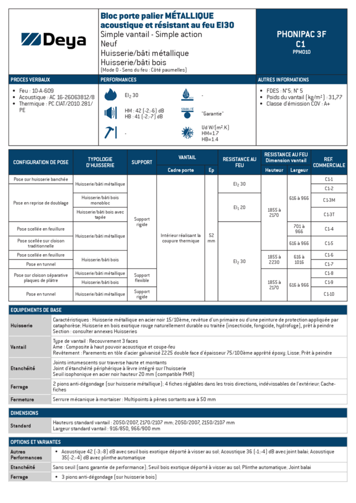 Huisserie/bâti métallique ; Huisserie/bâti bois monobloc ; Huisserie/bâti bois ; Huisserie/bâti bois avec tapée
